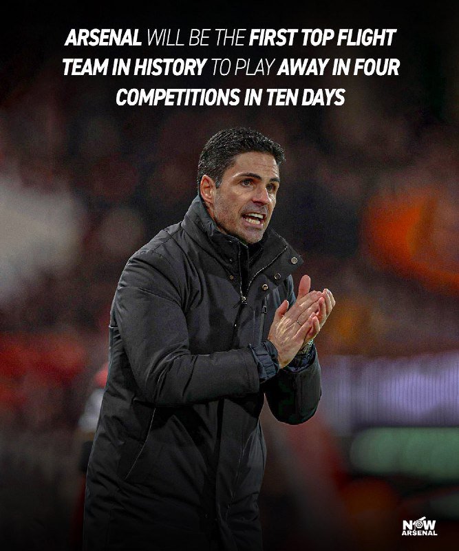 Arsenal will be the first top flight team in history to play away in four compet…