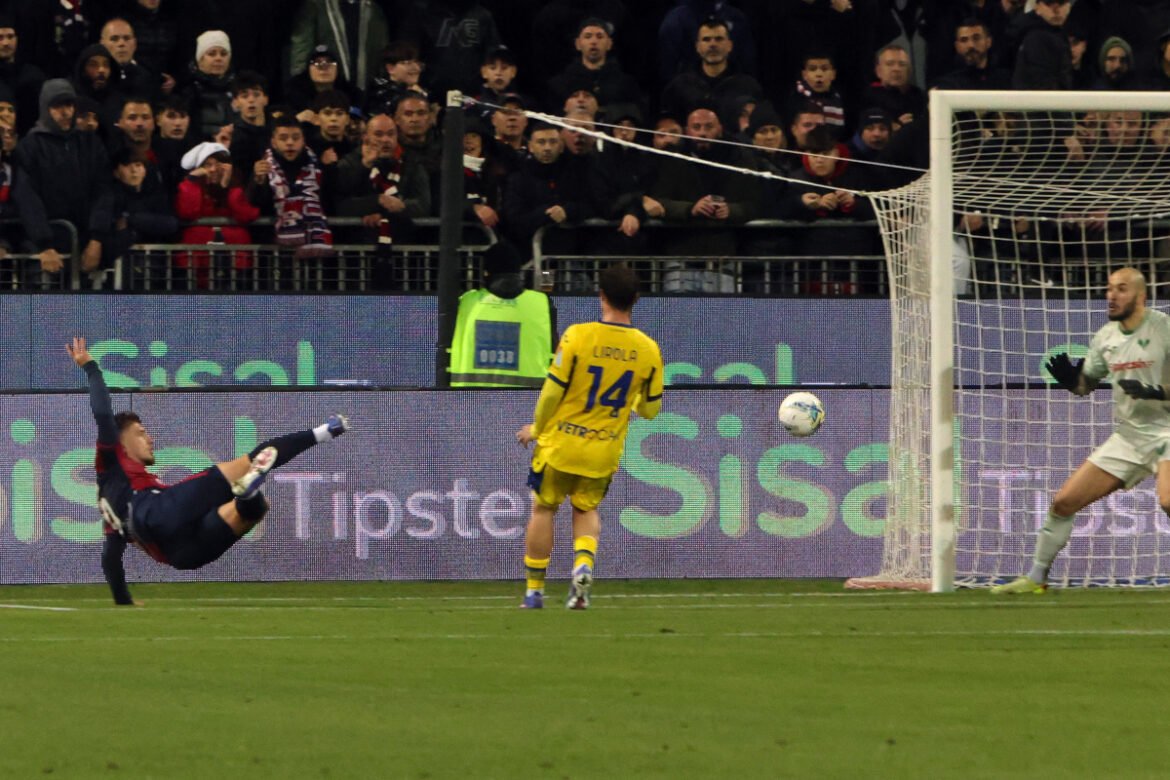 CAGLIARI, ITALY – JANUARY 31: Semih Kilicsoy of Cagliari scores his team’s second goal (2-0) during the Serie A match between Cagliari Calcio and Hellas Verona FC at Stadio Sant’Elia on January 31, 2026 in Cagliari, Italy. (Photo by Enrico Locci/Getty Images)