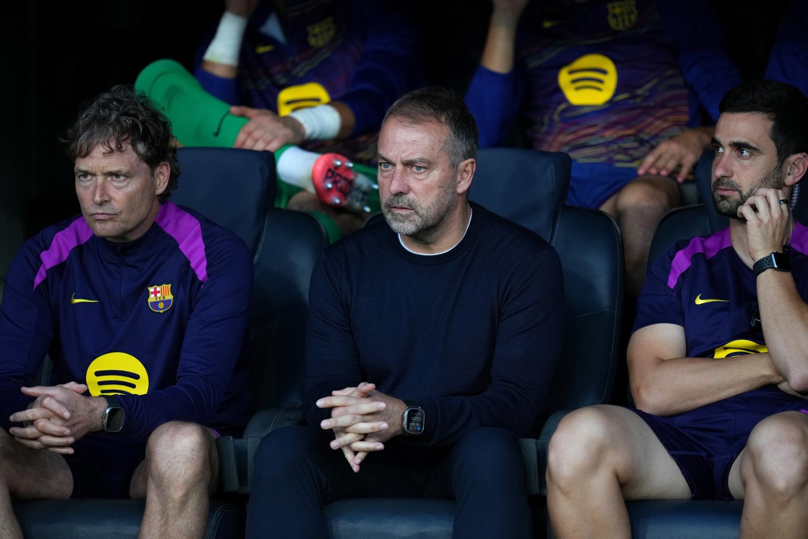 Flick’s system helps Barcelona commit more players forward and dominate territory, but it also leaves them vulnerable in transition.